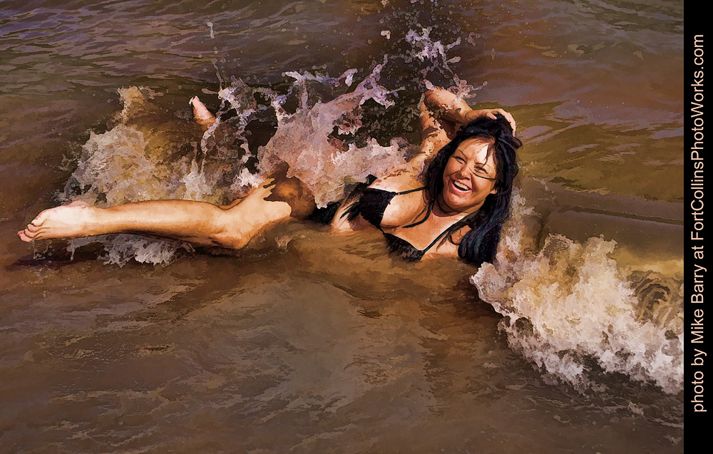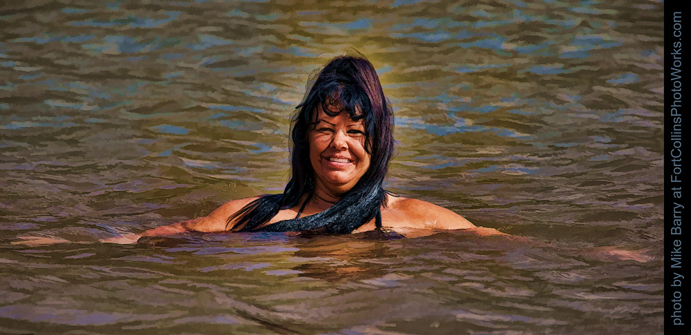 Dawn of the Rockies posed for us at the South Bay Swim Beach, located near the South Bay Campground at Horsetooth Reservoir. The weather was beautiful, and so were the models. The sun was quite harsh, causing more shadows than I like, but occassionally a cloud would block the sun enough to soften the shadows. We all had fun shooting the models while they posed on the beach and in the water. Please click on the Facebook Like link below if you like my pictures of Dawn. |